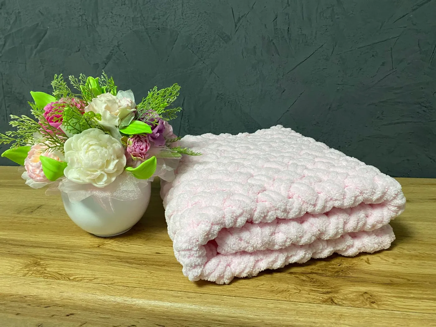 Ručne háčkovaná deka je vyrobená z jemnej a kvalitnej puffy vlny, ktorá je veľmi mäkká, hrejivá a príjemná na dotyk. S rozmerom 60 × 80 cm je ideálna pre bábätká, detičky aj ako milý a praktický doplnok do kočíka, postieľky či detskej izbičky. Vďaka kvalitnému materiálu je deka vhodná aj pre tých najmenších a potešií každého, kto obľubuje jemné, pohodlné a ručne vyrábané kúsky.