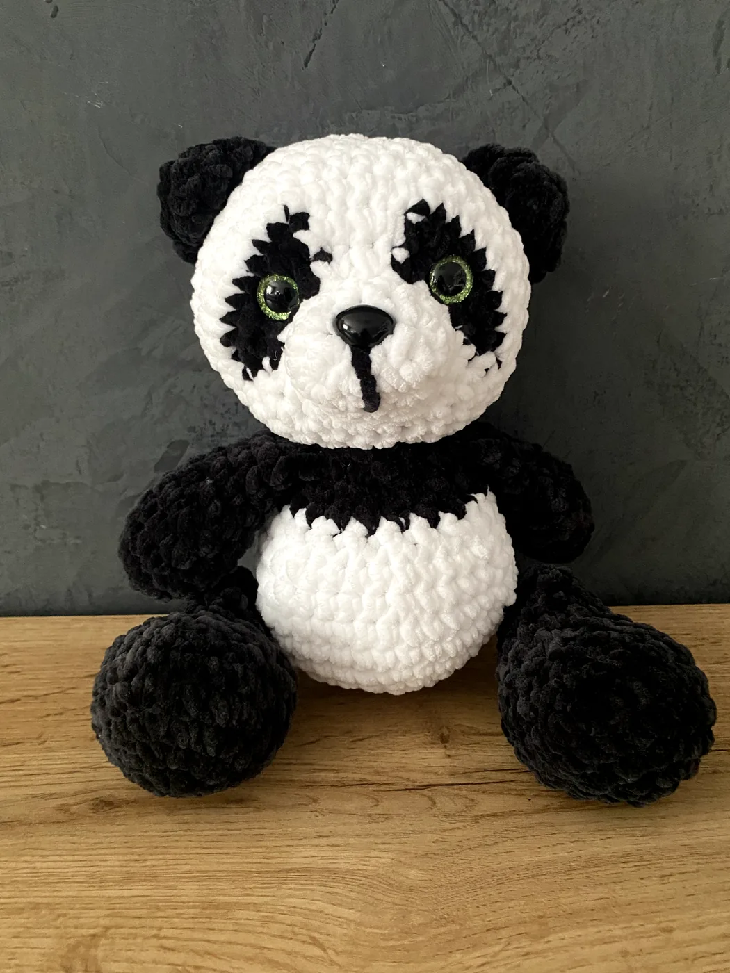 Táto ručne háčkovaná panda Mimi je nežný handmade spoločník, ktorý poteší malých aj veľkých milovníkov zvieratiek. Je vyrobená z mäkkej a príjemnej vlny, vďaka čomu je hebká na dotyk a krásne sa drží v detských ručičkách. Jej typické čierno-biele prevedenie, milý výraz a rozkošný vzhľad z nej robia hračku, ktorú si detičky rýchlo obľúbia. Panda Mimi je vhodná na každodenné hranie, mojkanie aj ako krásny doplnok do detskej izbičky. Poteší aj ako originálny darček pre každého, kto má rád ručne vyrábané, bezpečné a láskyplne vytvorené hračky.
