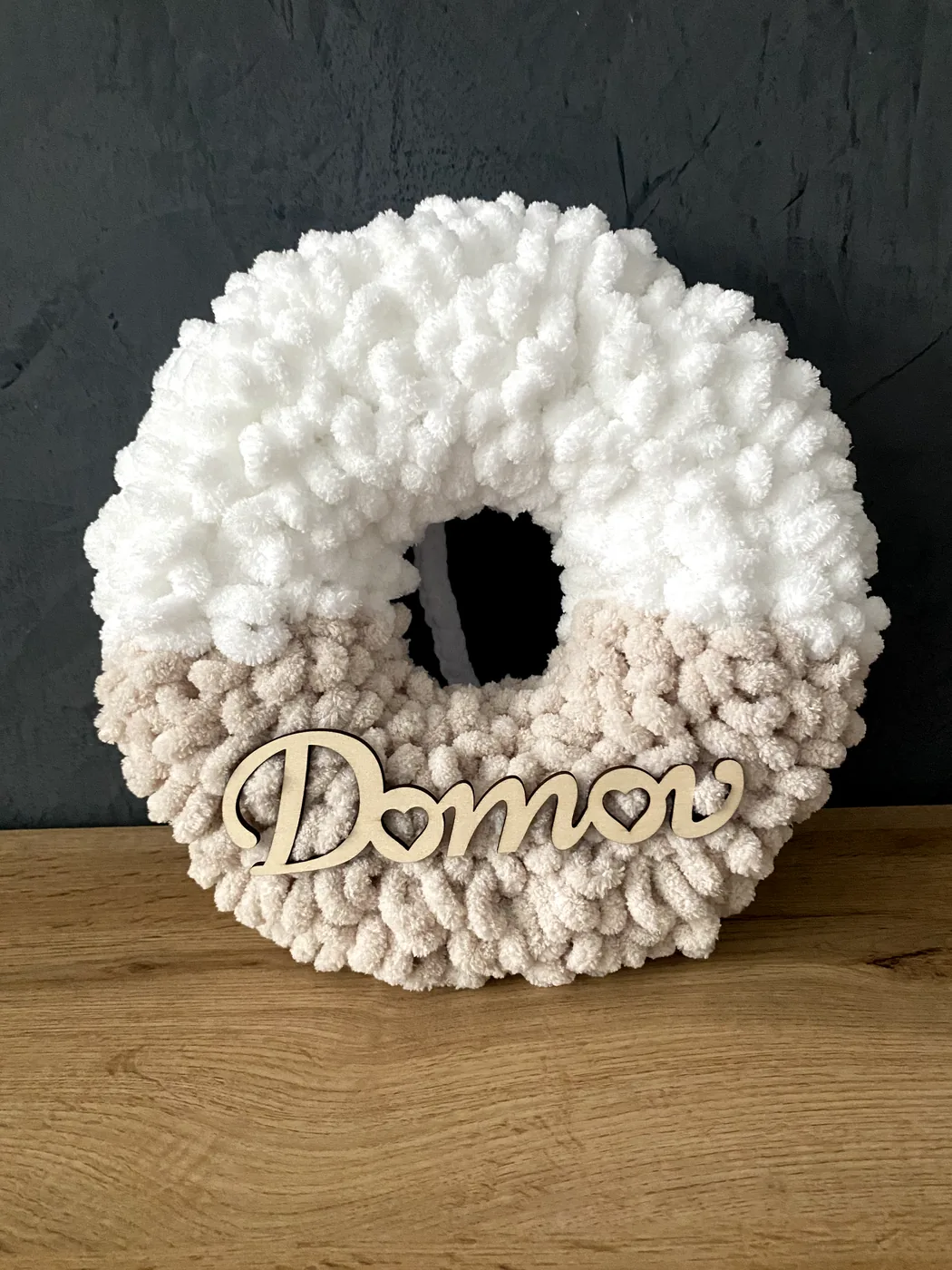 Ručne vyrobený veniec z jemnej a mäkkej Alize Puffy vlny s polystyrénovým vnútrom je krásnou vnútornou dekoráciou, ktorá zútulní každý domov. Je vhodný na zavesenie na dvere, do chodby alebo ako milý doplnok do interiéru. Veniec pôsobí nežne, hrejivo a vďaka drevenému nápisu Domov vytvára príjemnú a vítajúcu atmosféru už pri vstupe. Je ideálny pre každého, kto má rád jemné, štýlové a ručne vyrábané dekorácie, ktoré dodajú domovu osobité čaro.