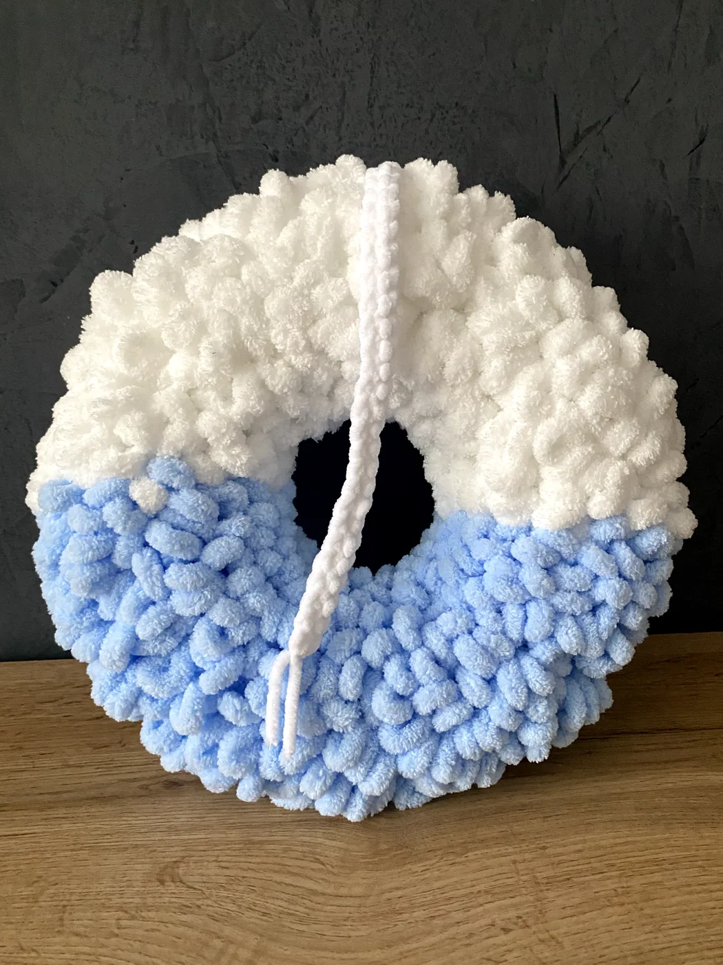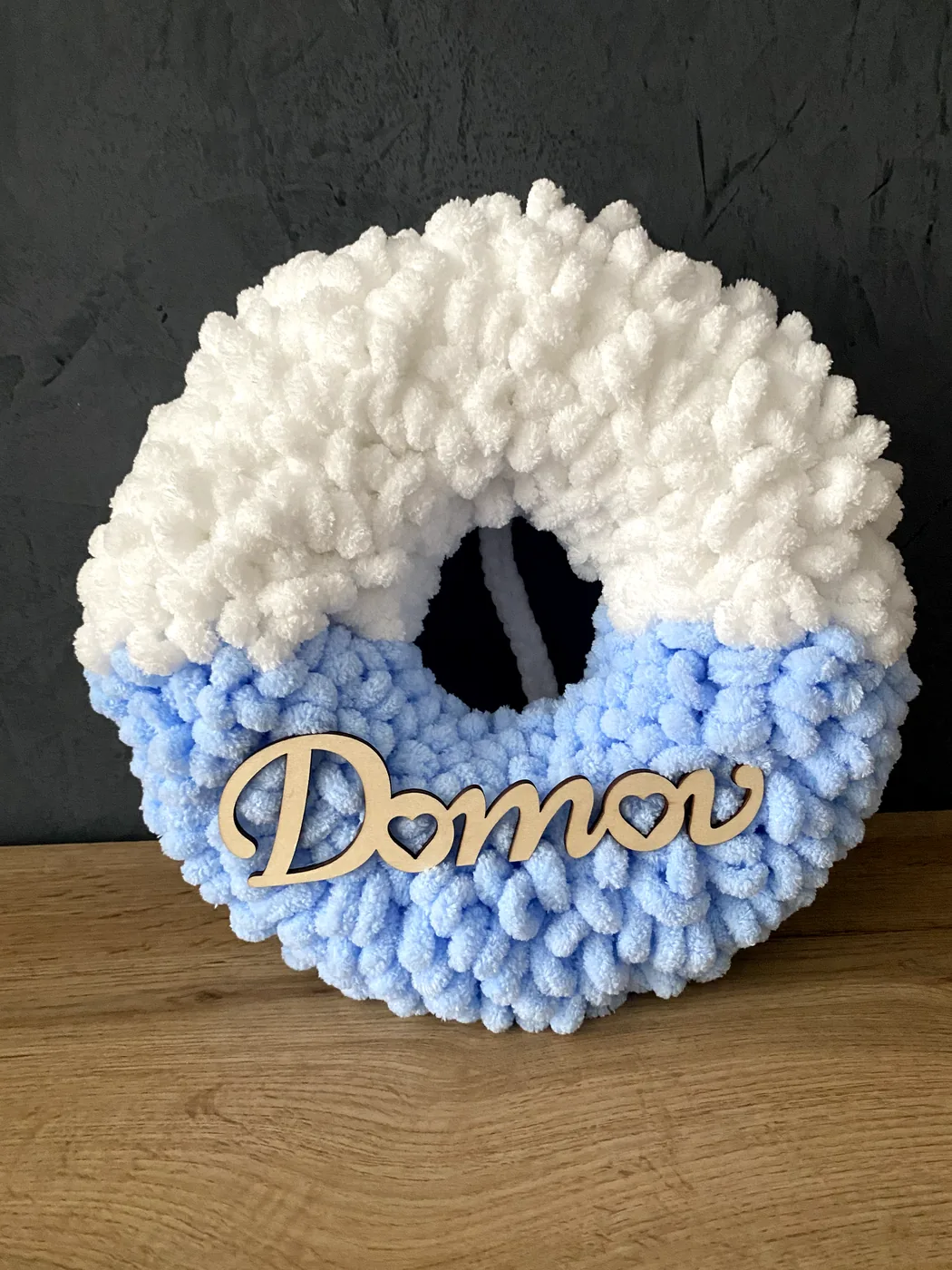 Ručne vyrobený veniec z jemnej a mäkkej Alize Puffy vlny s polystyrénovým vnútrom je krásnou vnútornou dekoráciou, ktorá zútulní každý domov. Je vhodný na zavesenie na dvere, do chodby alebo ako milý doplnok do interiéru. Veniec pôsobí nežne, hrejivo a vďaka drevenému nápisu Domov vytvára príjemnú a vítajúcu atmosféru už pri vstupe. Je ideálny pre každého, kto má rád jemné, štýlové a ručne vyrábané dekorácie, ktoré dodajú domovu osobité čaro.