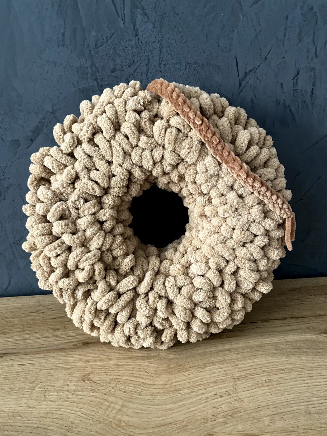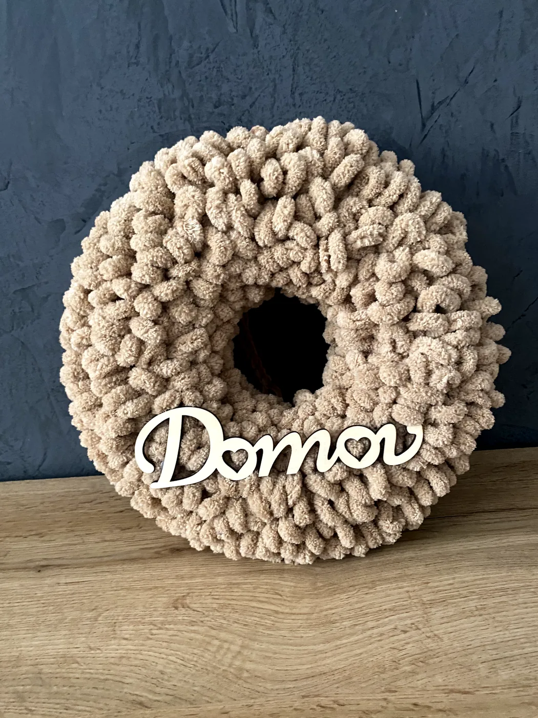 Ručne vyrobený veniec z jemnej a mäkkej Alize Puffy vlny s polystyrénovým vnútrom je krásnou vnútornou dekoráciou, ktorá zútulní každý domov. Je vhodný na zavesenie na dvere, do chodby alebo ako milý doplnok do interiéru. Veniec pôsobí nežne, hrejivo a vďaka drevenému nápisu Domov vytvára príjemnú a vítajúcu atmosféru už pri vstupe. Je ideálny pre každého, kto má rád jemné, štýlové a ručne vyrábané dekorácie, ktoré dodajú domovu osobité čaro.