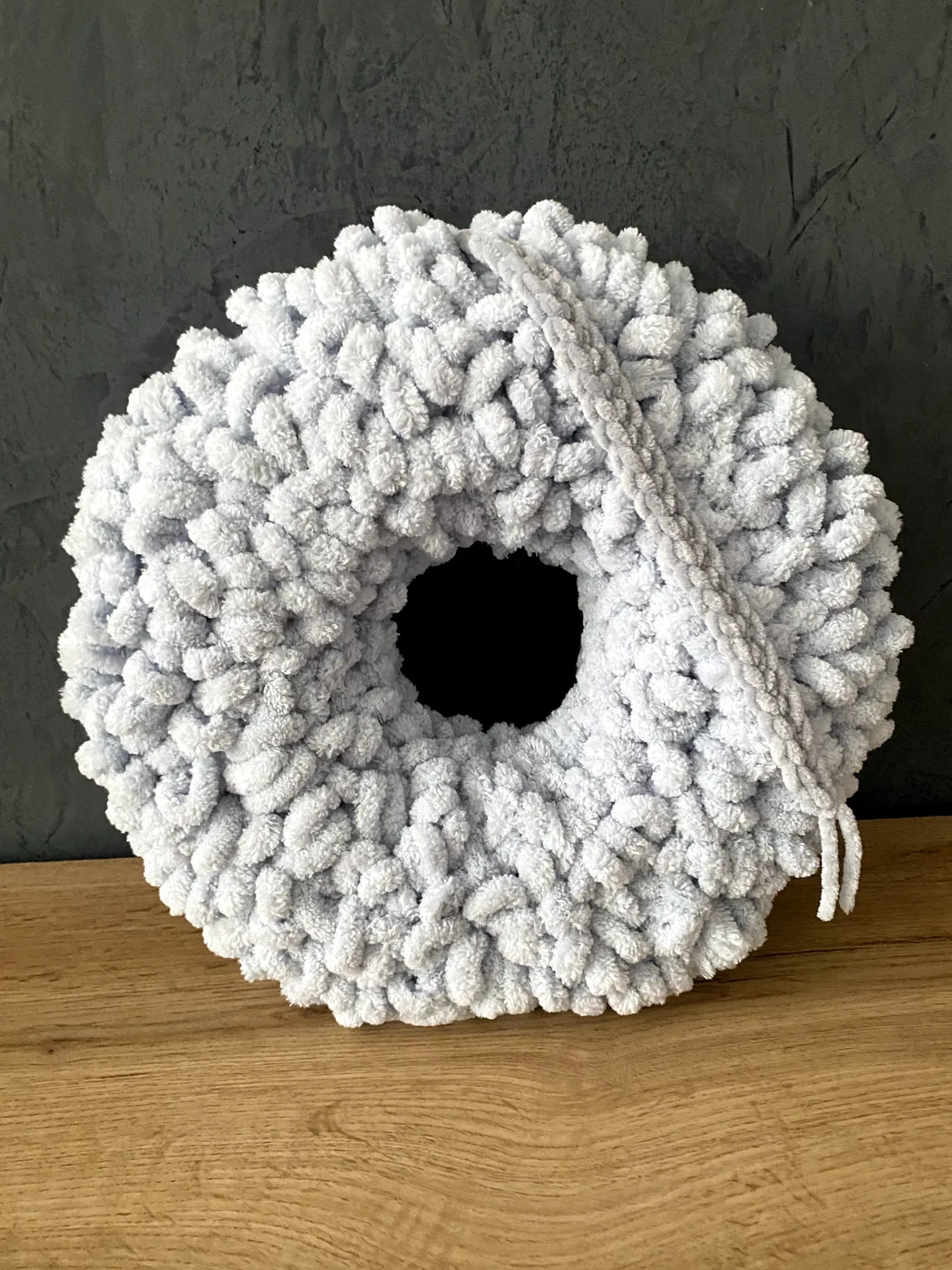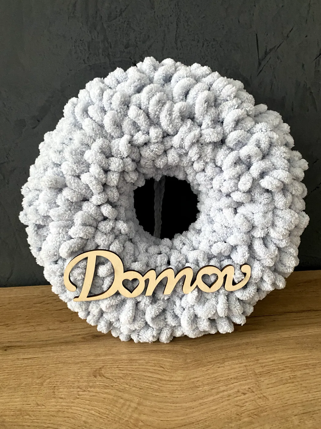 Ručne vyrobený veniec z jemnej a mäkkej Alize Puffy vlny s polystyrénovým vnútrom je krásnou vnútornou dekoráciou, ktorá zútulní každý domov. Je vhodný na zavesenie na dvere, do chodby alebo ako milý doplnok do interiéru. Veniec pôsobí nežne, hrejivo a vďaka drevenému nápisu Domov vytvára príjemnú a vítajúcu atmosféru už pri vstupe. Je ideálny pre každého, kto má rád jemné, štýlové a ručne vyrábané dekorácie, ktoré dodajú domovu osobité čaro.