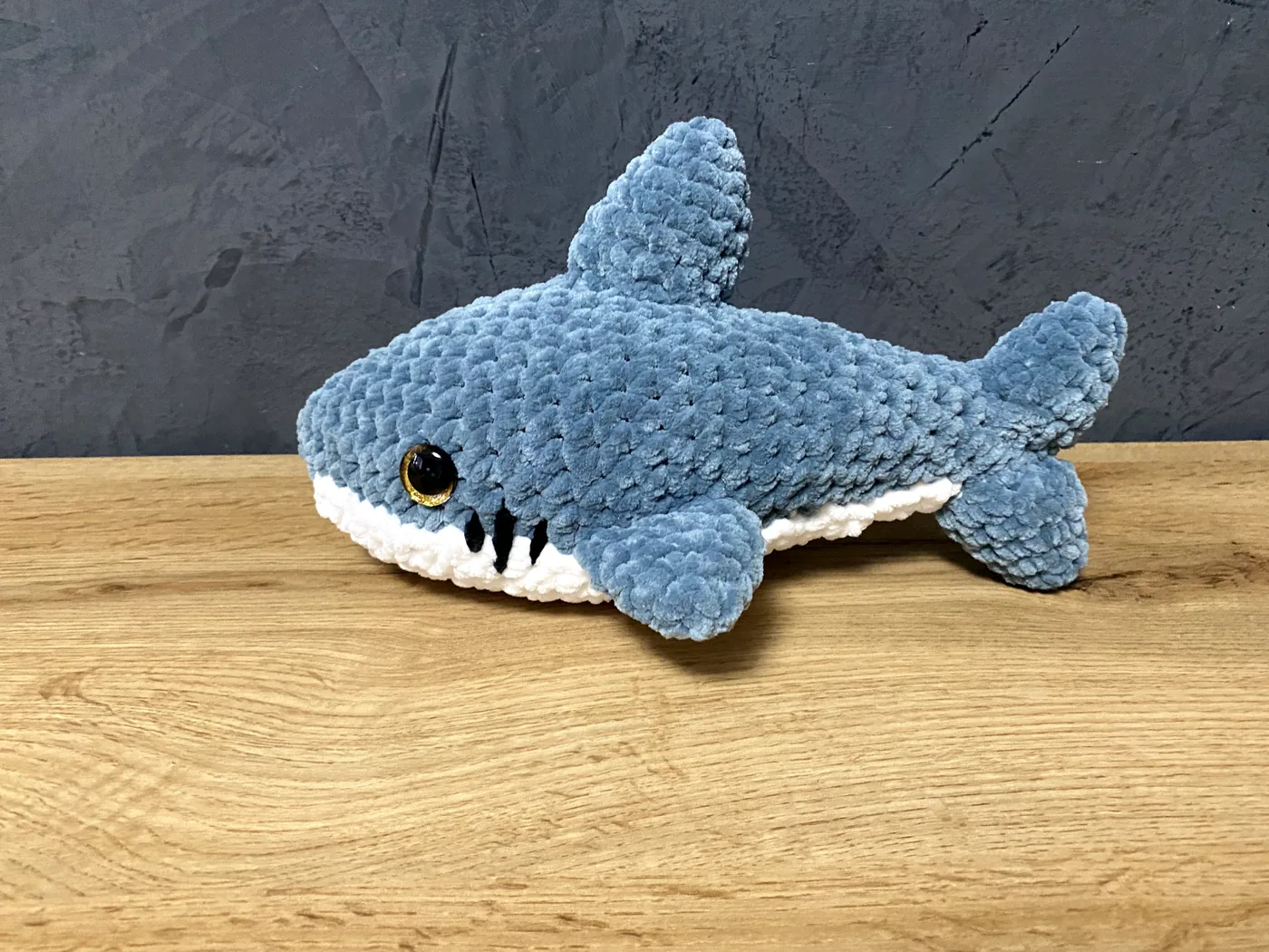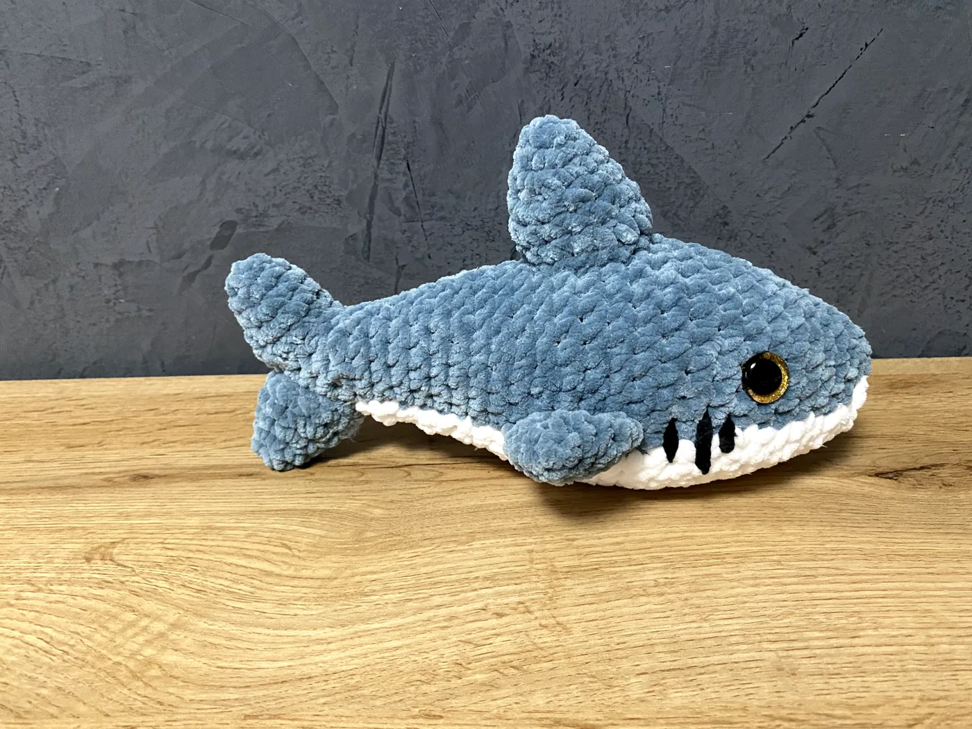 Ručne háčkovaný žralok Sharky je vyrobený z veľmi mäkkej a jemnej vlny, ktorá je príjemná na dotyk. Svojím bielym bruškom, milými žiabrami a nežným vzhľadom si okamžite získa srdiečko malých aj veľkých. Je mäkkučký, prítulný a ako stvorený na mojkanie aj hranie. Žralok Sharky poteší nielen ako hračka, ale aj ako originálny darček pre detičky, ktoré milujú mäkkých a bezpečných kamarátov.